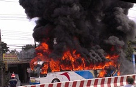 Xe khách bốc cháy dữ dội, hành khách đập cửa lao ra ngoài
