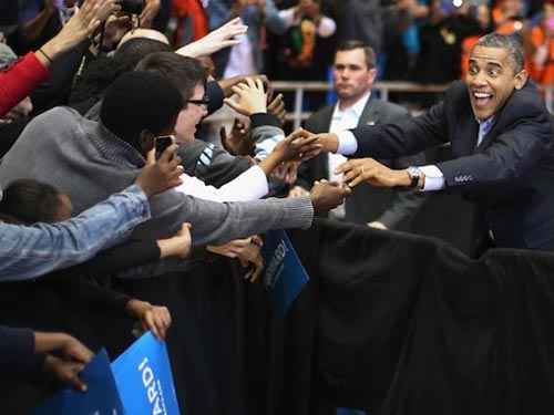 Nhiều cử tri tranh nhau chụp ảnh ông Obama (Ảnh: THE TICKET)