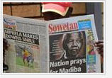 "Đất nước cầu nguyện cho Madiba" là tiêu đề trên trang nhất của nhật báo Sowetan.
