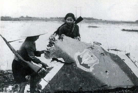 Hai cô dân quân bên xác B52. Tháng 12/ 1972. Ảnh Google