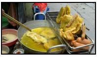 Xúc xích rán bày bán tràn lan tại các vỉa hè với giá "bèo"...