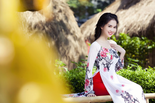 Ngọc Trinh diện áo dài mừng xuân