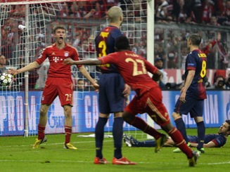 Thể hiện một phong độ khủng khiếp, Bayern Munich đã gây tiếng vang lớn khi đánh bại Barcelona 4-0 tại Allianz Arena ở bán kết lượt đi Champions League. Mueller lập cú đúp, Robben và Gomez ghi 1 bàn, tấm vé vào chung kết gần như nằm trong tay “Hùm xám”.