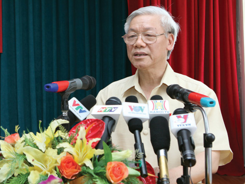 Tổng bí thư Nguyễn Phú Trọng phát biểu tại hội nghị tiếp xúc cử tri Q.Ba Đình - Ảnh: Ngọc Thắng |