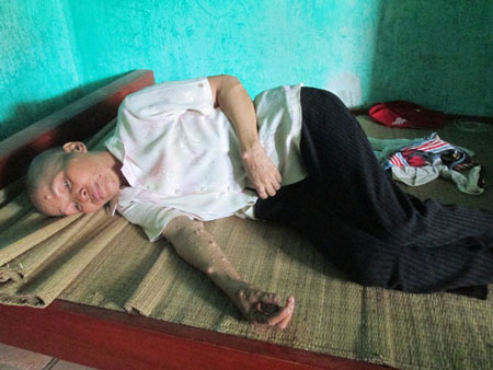 Chúng tôi đến thăm mẹ con chị theo lời cầu cứu của những người hàng xóm nơi người đàn bà bất hạnh này đang sống. Cái nắng gay gắt như đổ lửa khiến căn nhà nhỏ thó nằm lọt thỏm trong xóm nghèo của mẹ con chị càng trở nên ngột ngạt và oi bức. Trong góc nhà tối om, chị khập khiễng với chân tàn tật, dáng người còm cõi ra mở cửa, giọng nói đã thều thào không thành tiếng.