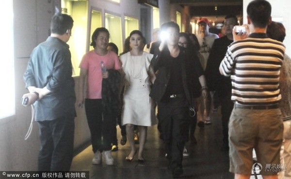 Vệ sĩ Phạm Băng Băng chiếu đèn pin vào phóng viên