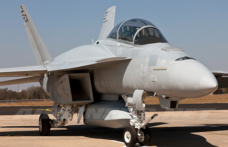 Biến thể mới nhất của tiêm kích hạm F/A-18E/F với 2 khoang chứa nhiên liệu đặt ở mặt trên gốc cánh và thùng chứa vũ khí nằm dưới bụng.
