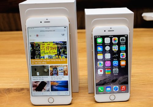 | Apple iPhone 6 và iPhone 6 Plus. Ảnh: Huy Đức. |