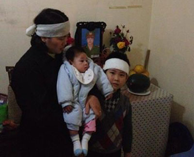 Thượng úy Nguyễn Xuân Biên qua đời để lại vợ và 2 con nhỏ.