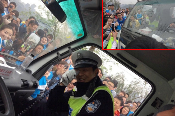 Ban đầu chỉ có một vài bạn nhận ra vẻ đẹp trai rất giống với thần tượng Dĩ Thâm và đến hỏi chuyện xin chụp hình, thế nhưng đã ngay lập tức thu hút sự chú ý của cả đám đông. Không chỉ các bạn nữ mà thậm chí nhiều bạn nam cũng kéo đến vây quanh xin chụp ảnh. Anh chàng cảnh sát bỗng trở nên nổi bật như một ngôi sao hàng đầu.