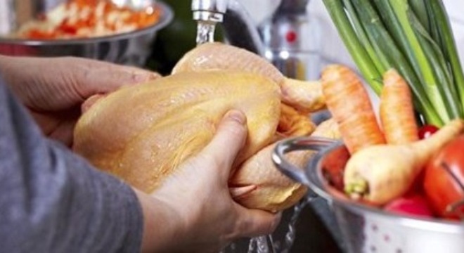 Rửa thịt gà sống làm vi khuẩn lây lan và có nguy cơ gây ra ngộ độc thực phẩm.