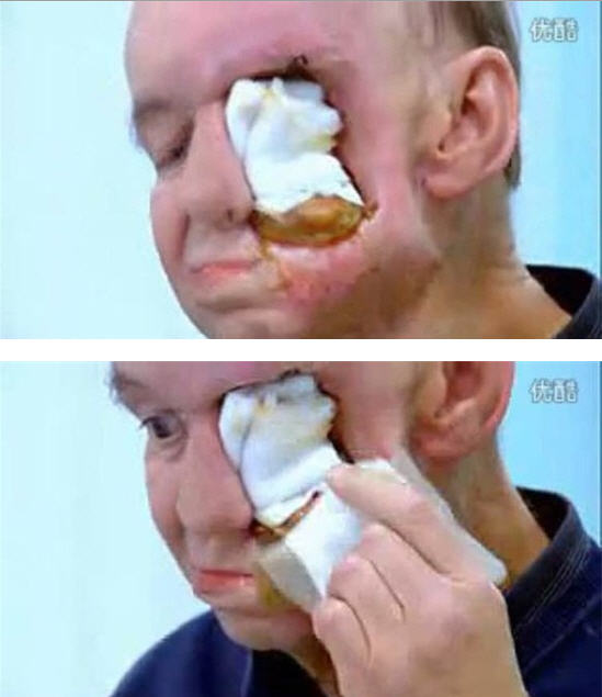 Dung mạo đáng sợ của người đàn ông bị khoét nửa mặt.