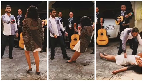 Đoạn clip quay lại màn cầu hôn cho thấy, khi Giles vừa trao chiếc hộp cho bạn gái và ban nhạc tấu lên những giai điệu trữ tình thì Rentería bỗng dưng ngã phịch xuống mặt đất như một khúc gỗ. Tất nhiên, Rentería xỉu không phải vì từ chối lời cầu hôn mà chỉ vì quá xúc động và vui sướng vì bất ngờ.