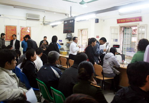 Thảo nào, trước khi vào đây, một nhóm thanh niên cả nam lẫn nữa đứng dàn hàng ngang chẹt cứng lối vào cơ quan với những lời mời đại loại như: "Anh vào đây làm thì thủ tục sẽ nhanh gọn, không phải chen lấn, xếp hàng, bên em sẽ có người vào nộp cho anh”.
