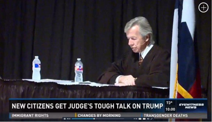 Thẩm phán liên bang John Primomo, người bị chỉ trích nặng nề vì nói với những người tuyên thệ vào quốc tịch hồi tuần rồi, rằng “quí vị nên dọn đến nước khác để ở” nếu không thích ông Donald Trump làm tổng thống.