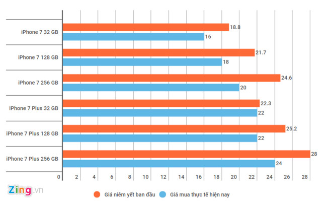 Với mức giảm này, người dùng chỉ phải bỏ ra 18 triệu đồng cho một chiếc iPhone 7 128 GB, và 22 triệu đồng cho 7 Plus 128 GB.