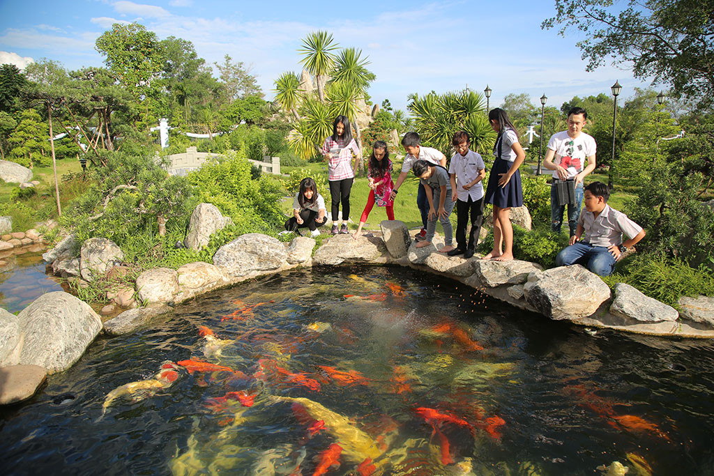 Trước khi bước vào những bài tập chuyên môn, Dương Triệu Vũ đã đưa các học trò nhí của mình đến thăm đền thờ tổ của danh hài Hoài Linh.