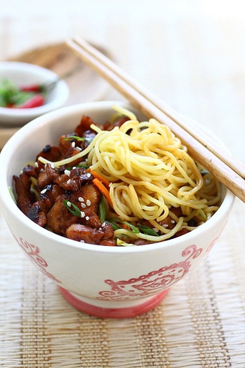 cách làm, mỳ, , thịt gà, xào