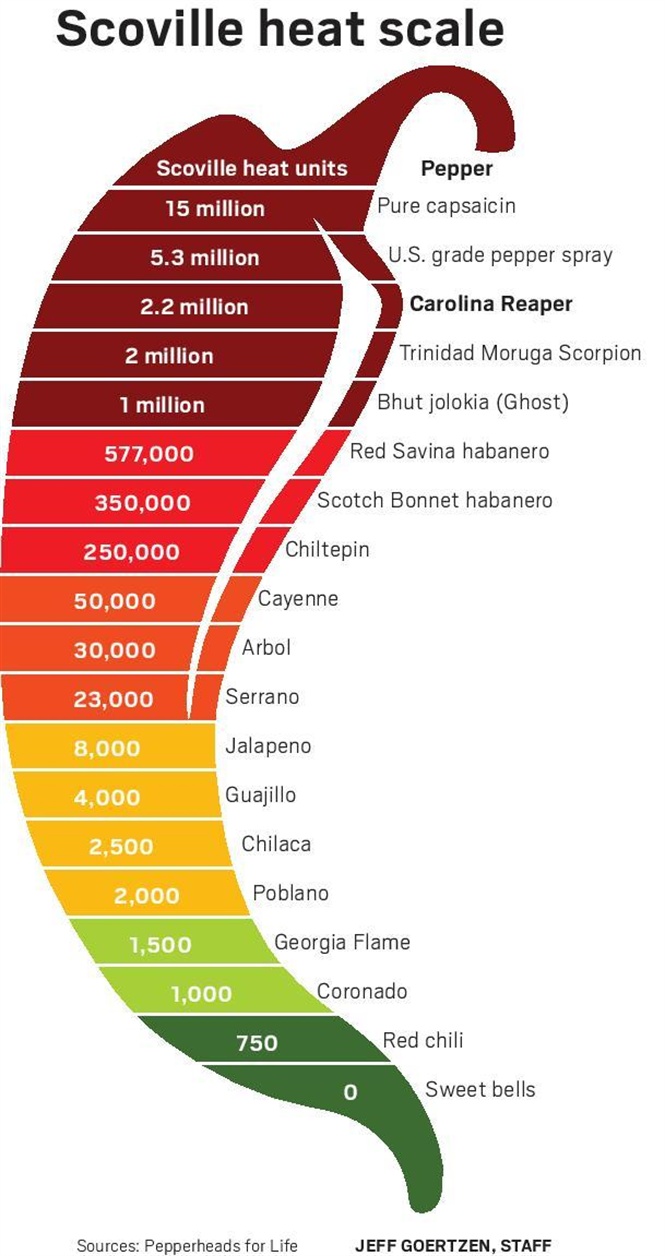 Ớt nào là ớt chẳng cay, tuy nhiên, nếu ớt thường chỉ cay 3 nghìn đơn vị Scoville, nhưng loại ớt Carolina Reaper đạt tới 3,18 triệu đơn vị.