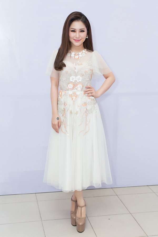 Hương Tràm đỏ mặt lấy tay che vội váy ngắn cũn cỡn