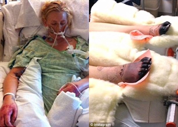 Hình ảnh của Wasser khi cô ở trong bệnh viện đối mặt với những cơn sốt cao, đau tim và bị hoại tử chân.