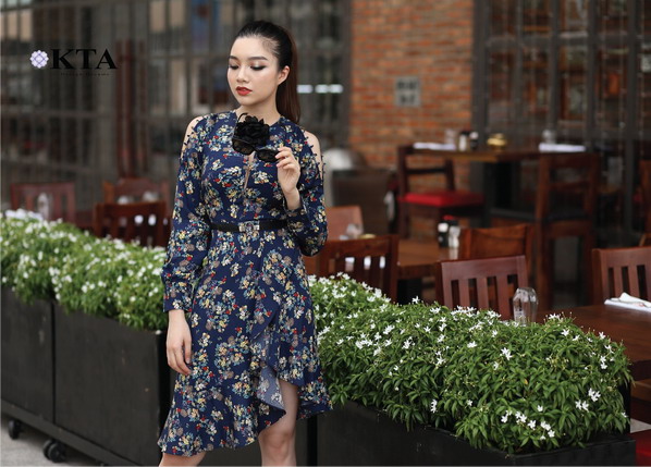 Diễn viên Võ Trinh đẹp rực rỡ trong mẫu thiết kế đầm Lụa Hoa nhí. Đầm với chất vải lụa mềm mại, các đường cắt cúp khéo léo, tôn lên đường cong, nét quyến rũ và sự nữ tính của phái đẹp.