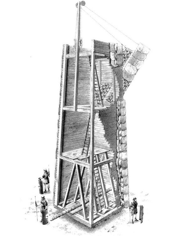 Tháp công thành, người Hi Lạp gọi là Helepolis, đă từng được sử dụng trong các trận chiến ở Hi Lạp từ những năm 300 TCN. Được thiết kế cho việc áp sát và xâm nhập những ṭa thành cao của kẻ thù, đây thực sự là một ṭa lâu đài di động nhiều tầng, được đẩy đi bằng sức người, có thể chở theo rất nhiều binh sĩ. Trêp tháp công thành cỡ lớn có nhiều cửa sổ để cung thủ và các loại vũ khí yểm trợ hạng nặng như Ballista khai hỏa.