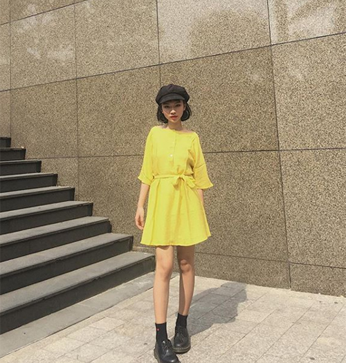 Màu vàng vốn đã chói chang như nắng thế nên bạn chẳng cần tốn công mix match hay kết hợp đủ kiểu phụ kiện cầu kỳ. Chỉ cần một chiếc váy vàng mù tạt đi cùng túi, giày tông cơ bản như đen, trắng là đã đủ có một set đồ dạo phố tuyệt xinh.