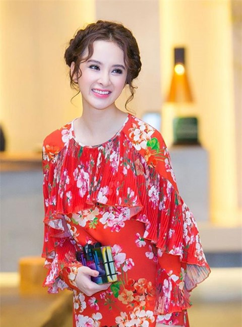 Angela Phương Trinh rất tài tình trong cách lựa chọn trang phục đi tham dự sự kiện để mình luôn trở thành tâm điểm và vượt trội hơn nhiều ngôi sao đồng nghiệp. Chiếc váy đỏ tươi tắn, chấm phá họa tiết hoa dây khiến cô đẹp rực rỡ hơn bao giờ hết. Thêm phụ kiện sang trọng, mái tóc tết vòm, trang điểm tự nhiên giúp hình ảnh Angela Phương Trinh tựa như nữ thần.