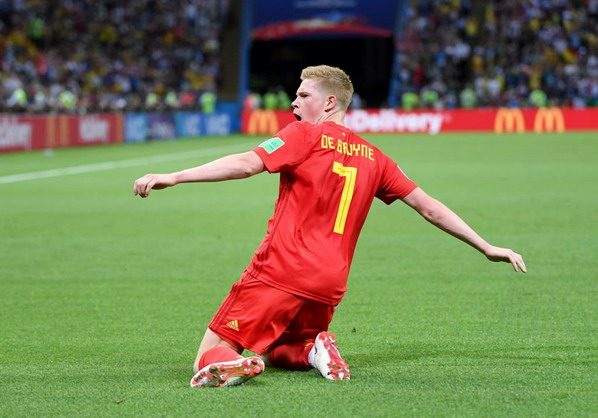 Goal ! Phút 32, cầu thủ số 7 BRUYNE sút tung lưới Brazil. Brazil 0 - 2 Bỉ