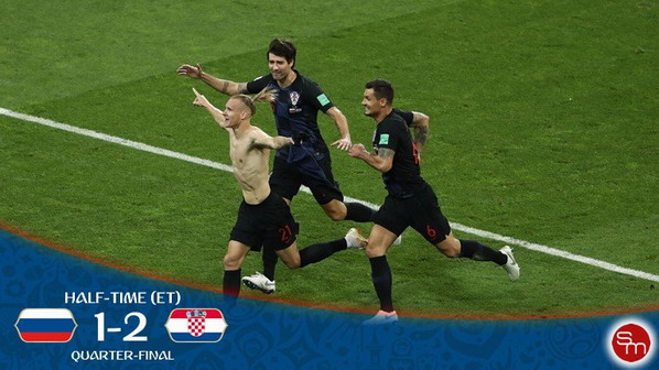 Phút 90, SUBAŠIC thủ môn của Croatia hình như bị chấn thương Croatia đã đổi 3. Theo luật mới, hiệp phụ có thể đổi thêm 1 người.