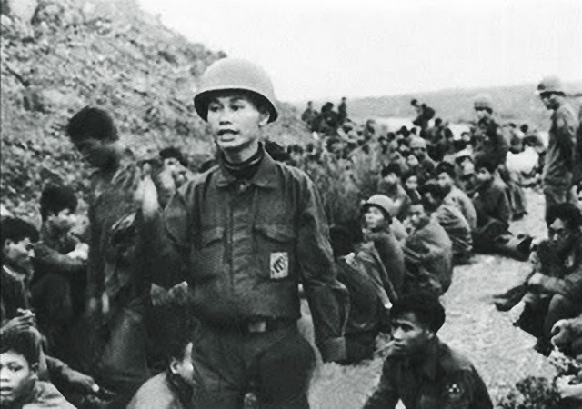 Bỗng tôi nghe tiếng Thượng Sĩ Sơn hô: ”Đứng lên! Đưa 2 tay lên khỏi đầu”. Thì ra cách chúng tôi khoảng 5-6 thước có một tên khác đang đi cầu. Thấy lộn xộn nó ngồi im tại chỗ, nhưng không ngờ bị Thượng Sĩ Sơn phát giác. Tên này đứng lên, 2 tay đưa lên đầu nên không kéo quần lên được, để ”Bác Hồ” lòng thòng coi tức cười qúa. Thượng Sĩ Sơn bước đến, chĩa súng sau lưng nó nói: ”Cài quần lại!”. Tên này lúng túng kéo quần lên, miệng hỏi: ”Các đồng chí ở đơn vị nào?”. Thằng Cầu nạt: ”Im mồm mày!”. Nó được dẫn lại gần chỗ tôi và thằng Meadows đang đứng. Thấy thằng Meadows to lớn như con gấu, râu ria 5-6 ngày chưa cạo thì nó biết ngay chúng tôi là ai rồi nên không hỏi nữa. Thằng Meadows kéo tay nó xuống, quặt ra sau lưng tròng dây còng vào. Nó dẫy dụa nói: ”Các anh phải đối xử tử tế với tù binh”. Thằng Cầu đá vào đít nó rồi nói: ”Con c… ông nè chứ tử tế. Tụi mày bắt được tụi tao có tử tế không?”. Thằng Meadows trong tay đã cầm sẵn miếng băng keo chụp dán miệng tên đó câm luôn.