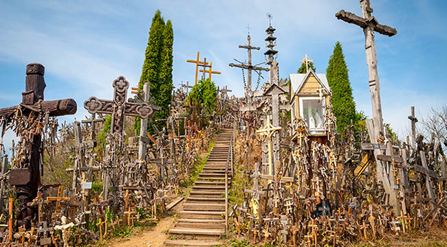 Hill of Crosses là một địa điểm nghi lễ truyền thống được người Litva sử dụng để thương tiếc những người thân của họ bị mất trong chiến tranh. Liên Xô đã san phẳng hoàn toàn khu vực này hai lần và người dân địa phương đã xây dựng lại nó thậm chí còn lớn hơn trước. Ngày nay, Hill of Crosses có hơn 100000 thánh giá và cũng được mô tả là nơi yêu thương, hòa bình và hy vọng của Giáo hoàng John Paul II.
