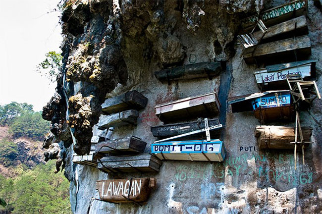 Người dân ở thành phố này bao giờ không chôn quan tài xuống dưới mặt đất, họ thường treo chúng lên vách đá. Muốn được chôn cất kiểu này người đã khuất cũng phải đáp ứng được một số điều kiện như họ phải kết hôn và đã có cháu. Người ta tin rằng quan tài treo càng cao thì linh hồn của người quá cố càng gần với thiên đàng.