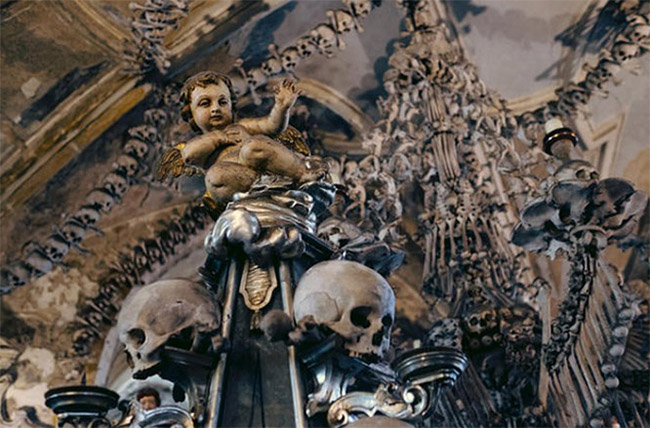 Vào thế kỷ 14, Tu viện trưởng đã thực hiện một cuộc hành hương đến Đất Thánh và mang đất về từ Golgotha. Ông rải đất trên các khu của tu viện điều này khiến tất cả mọi người sống trong khu vực này đều kiên quyết muốn được chôn cất ở Sedlec sau khi họ qua đời. Vì có quá nhiều người chết mà đất tại tu viện chỉ có giới hạn nên các "cư dân" cũ của nghĩa trang phải được khai quật để giải phóng không gian cho những người mới đến. Cuối cùng, Frantisek Rint, một người khắc gỗ, đề nghị sử dụng 40.000 xương này làm đồ trang trí nhà thờ.