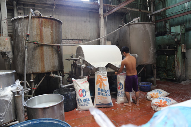 Cảnh sản xuất bún tại cơ sở Minh Hoàng .