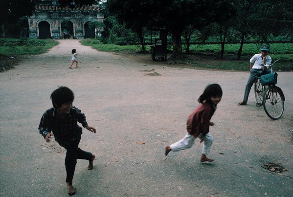 Trẻ em chơi đùa ở Hoàng thành Huế.
