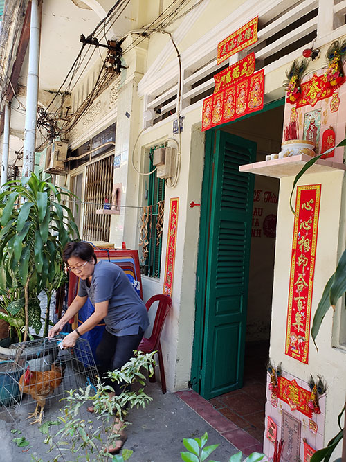Tôi dừng lại bên một căn hộ mà cả gia đình đang dọn dẹp, sơn sửa lại nhà cho sạch sẽ tinh tươm để đón tết. Bà H - người Sài Gòn lấy chồng Hoa kiều, nói về phong tục thờ cúng tết cổ truyền của người Hoa đất Chợ Lớn: “Người Hoa lập rất nhiều ban thờ từ trong nhà ra ngoài hiên. Như nhà tôi có cả thảy 5 ban thờ. Hai ban thờ trong nhà, một thờ gia tiên, một thờ Phật Quan Âm, Quan Công, Ông Táo. Bên ngoài là ban thờ Ông Thiên, Thổ Địa và một ban thờ bên ngoại của chồng tôi. Đặc biệt, ban thờ bên ngoại không bao giờ được đưa vào trong nhà vì người Hoa quan niệm “ma” đàng ngoại thì không được vào nhà và không được để thờ trên cao”.