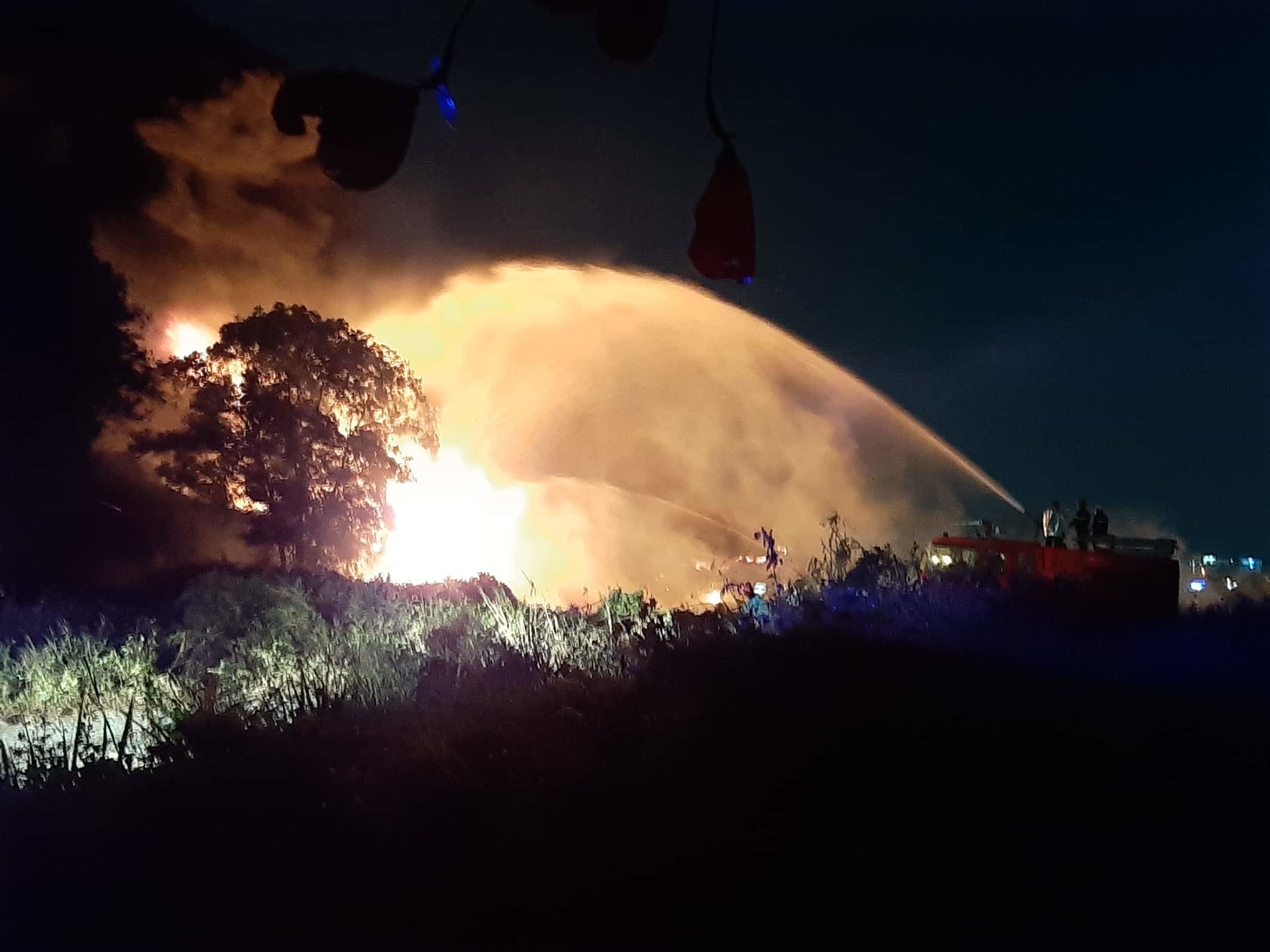 Vào khoảng 20h 10/3, người dân phát hiện lửa khói bùng cháy tại kho chứa nhớt bên trong bãi xe. Ngọn lửa nhanh chóng cháy lan, bao trùm với cột khói đen, bốc cao nghi ngút.