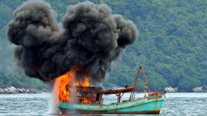 Nhưng Hải quân Indonesia thì nói các tàu cá này đánh bắt cá trái phép trong vùng đặc quyền kinh tế của nước họ, theo AFP hôm 29/4.