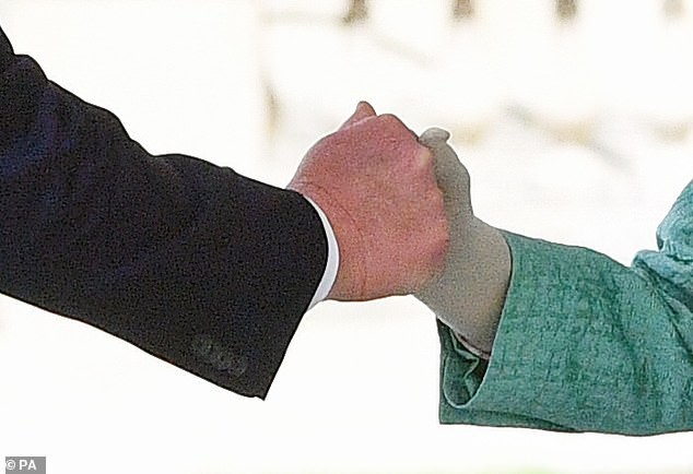 Động tác bắt tay kì lạ của Tổng thống Mỹ Donald Trump và Nữ hoàng Anh Elizabeth II. Ảnh: PA.