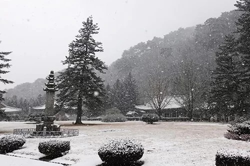 Triều Tiên còn đón chúng tôi bằng trận tuyết đầu mùa khi thăm các điểm ở phía Bắc. Đó là một trong những hình ảnh cho đến bây giờ tôi vẫn còn ghi nhớ. Ảnh: Minh Vũ.
