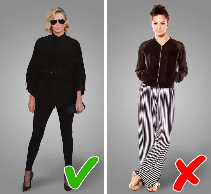 Bạn không cần phải chạy theo các xu hướng thời trang, quan trọng nhất là tìm được những trang phục khắc phục được những khiếm khuyết và tôn lên những ưu điểm của cơ thể. Ví dụ nếu bạn nhỏ, không nên mặc quần áo maxi quá khổ. Nếu bụng hơi to, bạn có thể mặc váy xòe che bớt bụng.