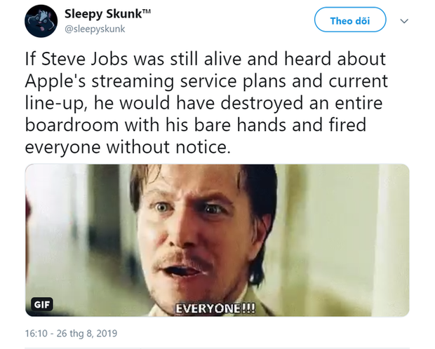"Nếu Steve Jobs mà còn sống thật à, ông ấy sẽ lao về Apple nổi điên tanh bành rồi sa thải hết cái đám nhân viên hiện nay, nhất là nhóm làm kế hoạch phát hành dịch vụ streaming của họ."