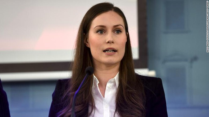 Thủ tướng Phần Lan Sanna Marin nói về các biện pháp chống COVID-19 ở Helsinki ngày 16/3 (Ảnh: CNN)