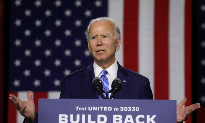 Joe Biden, ứng viên tổng thống đảng Dân chủ, phát biểu tại thành phố Wilmington, bang Delaware, Mỹ, hôm 14/7. Ảnh: Reuters.