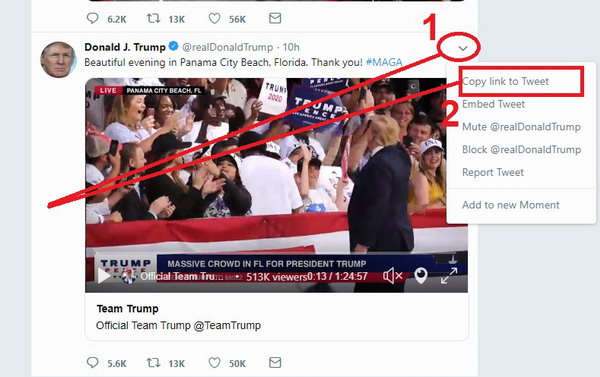 a/ Chon status, bấm nút More bên phải chọn Copy Link to Tweet (bấm nút chuột trái)