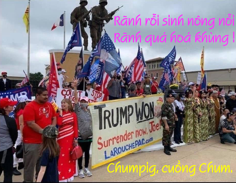 Tội nghiệp nhứt là đám little saigon...bao nhiêu công sức đổ mồ hôi nước mắm mà bây giờ ..tonton Biden tui vẩn thắng !!!