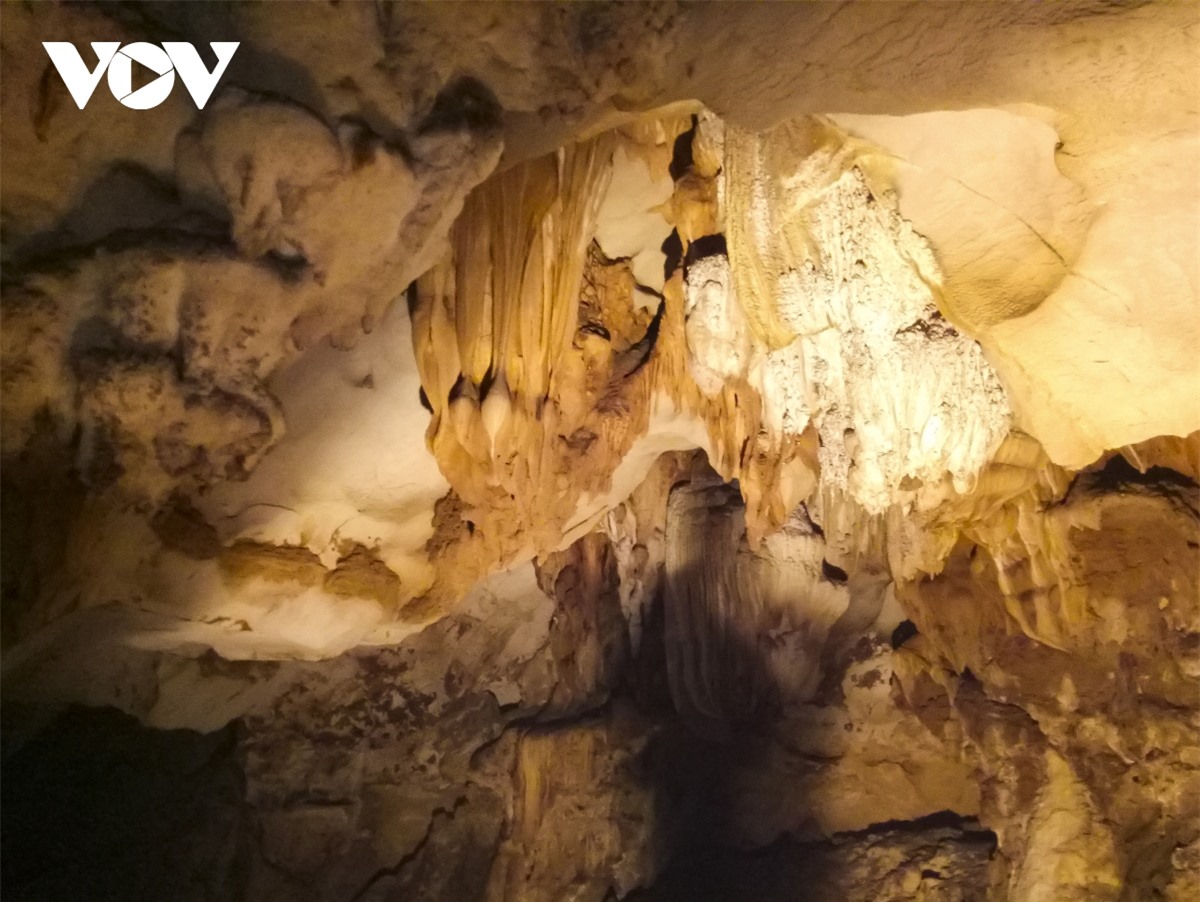 Trong hang có rất nhiều các nhũ đá màu vàng, xám, xanh rêu, phần lớn nền hang động là đất, cát, các cột đá, chuông đá…