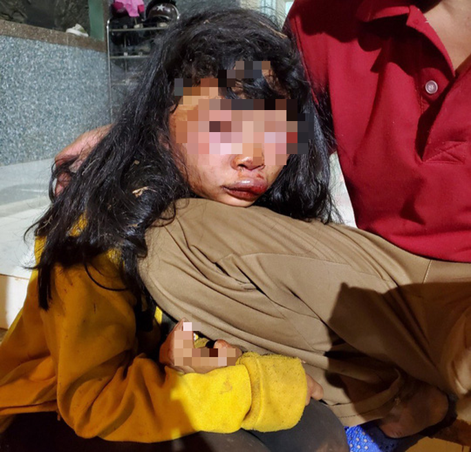 Khi chạy ra thì thấy cháu ruột là bé Trần Ngọc T.M (12 tuổi, học lớp 6 trường THCS Phan Bội Châu, thị trấn Ngãi Giao) bị nhiều vết thương khiến khuôn mặt sưng vù, chiếc xe đạp ngã nằm giữa sân. Theo chị H. lúc này cháu rất hoảng loạn, đòi gọi điện cầu cứu ba mẹ nhưng lại không nhớ tên ba mẹ.